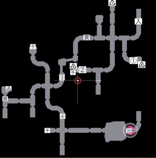 ▲数字=スイッチ、◯数字=扉、千=千両箱です。数字は対応したスイッチと扉になっています。