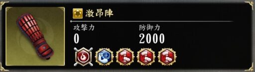 激闘の印は金にすることで65%も攻撃力を上げることができます。かつ重複するので防具3種につけた分だけ上乗せされます。