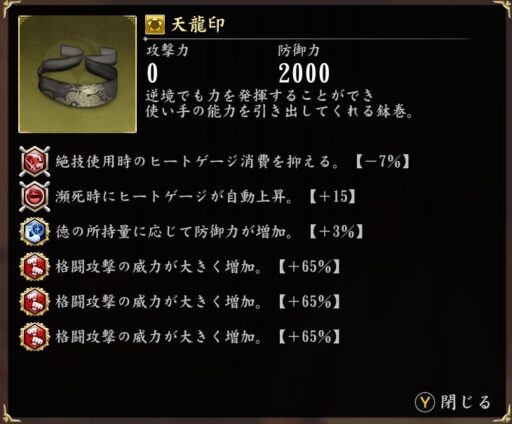 しかし格闘の型は武器の装備がない代わりに防具の角印に【格闘】と【激闘】という攻撃力を上げる専用の印が用意されています。格闘の角印と激闘の角印は上位下位の関係で激闘の角印のほうがより攻撃力が上がります。